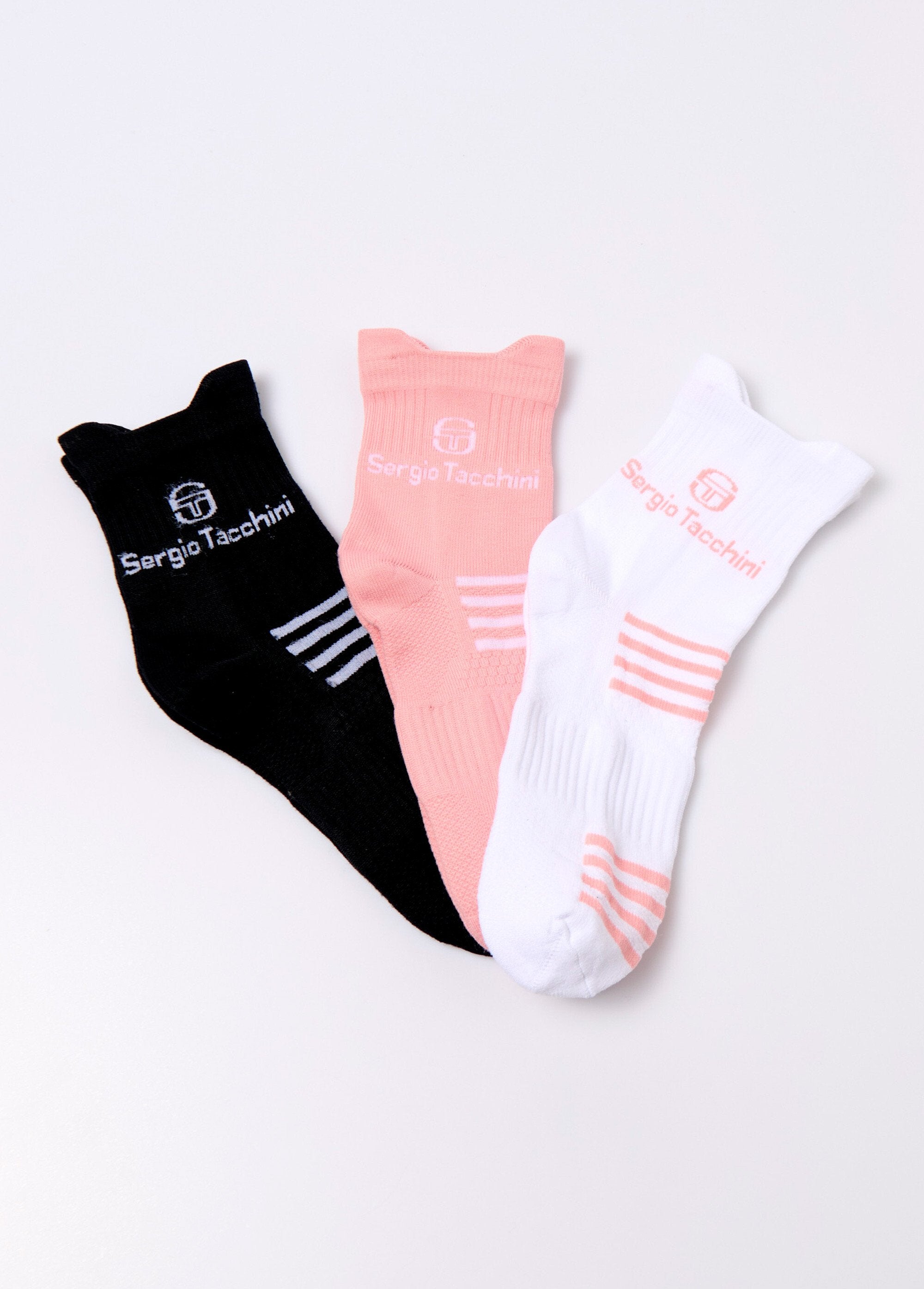 This pack of 3 Sergio Tacchini® ankle socks features a textured knit in light shades, combining elegance and comfort. The textured design offers a subtle touch of originality, while the light colors bring freshness and versatility. Ideal for everyday wear, these ankle socks guarantee optimal comfort while adding a chic and discreet touch to your outfits.